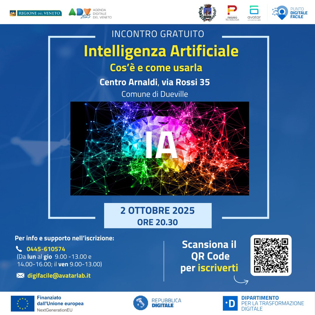 - Intelligenza artificiale: cos’è e come usarla giovedì 2 ottobre ore 20.30 Centro Arnaldi via Rossi, 35