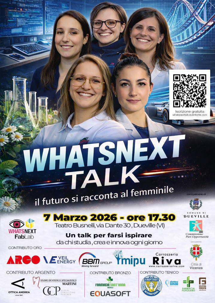 Eventi promossi dall'associazione Whatsnext FabLab Dueville APS con il patrocinio e il sostegno del Comune di Dueville, Commissione Pari Opportunità di Dueville, Città di Vicenza ed il contributo di alcune aziende del territorio